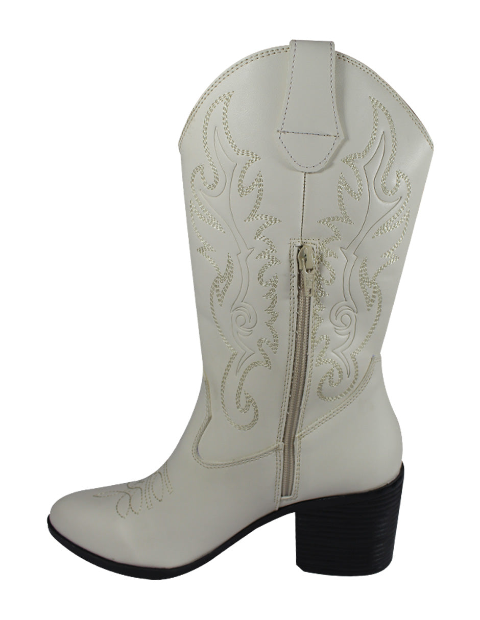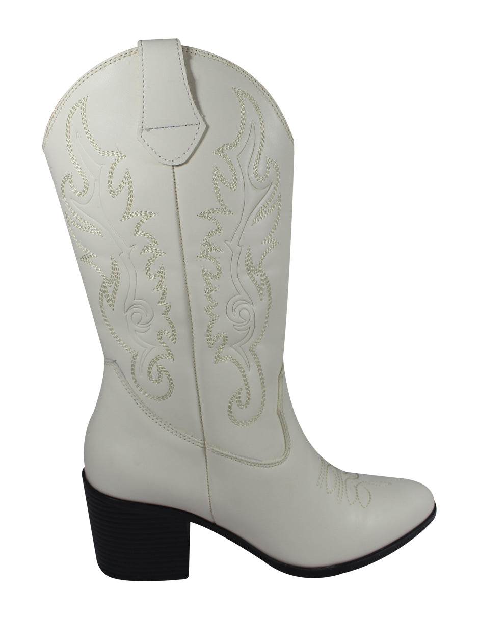 BOTAS VAQUERAS SINTÉTICAS PARA MUJER COLOR BLANCO LEON 1221