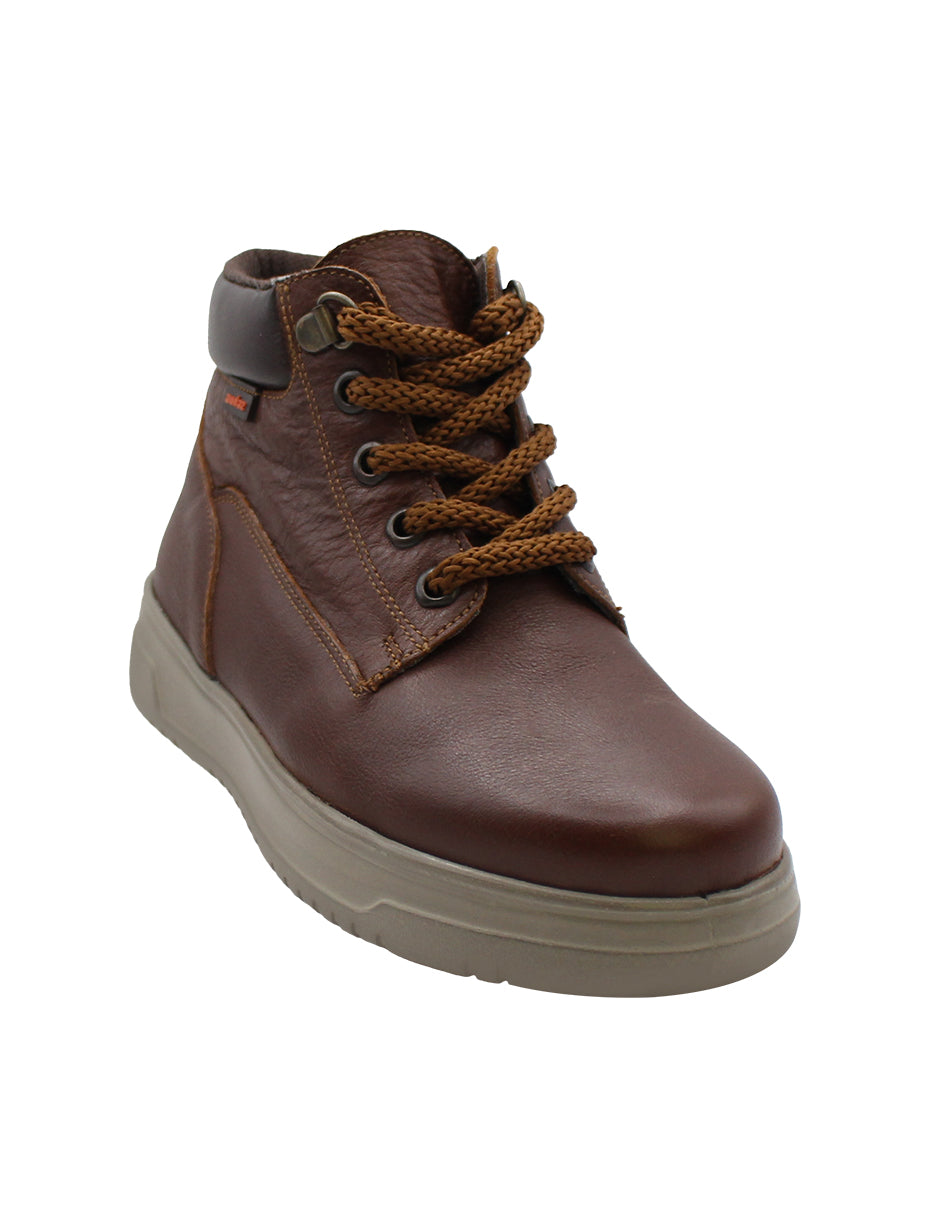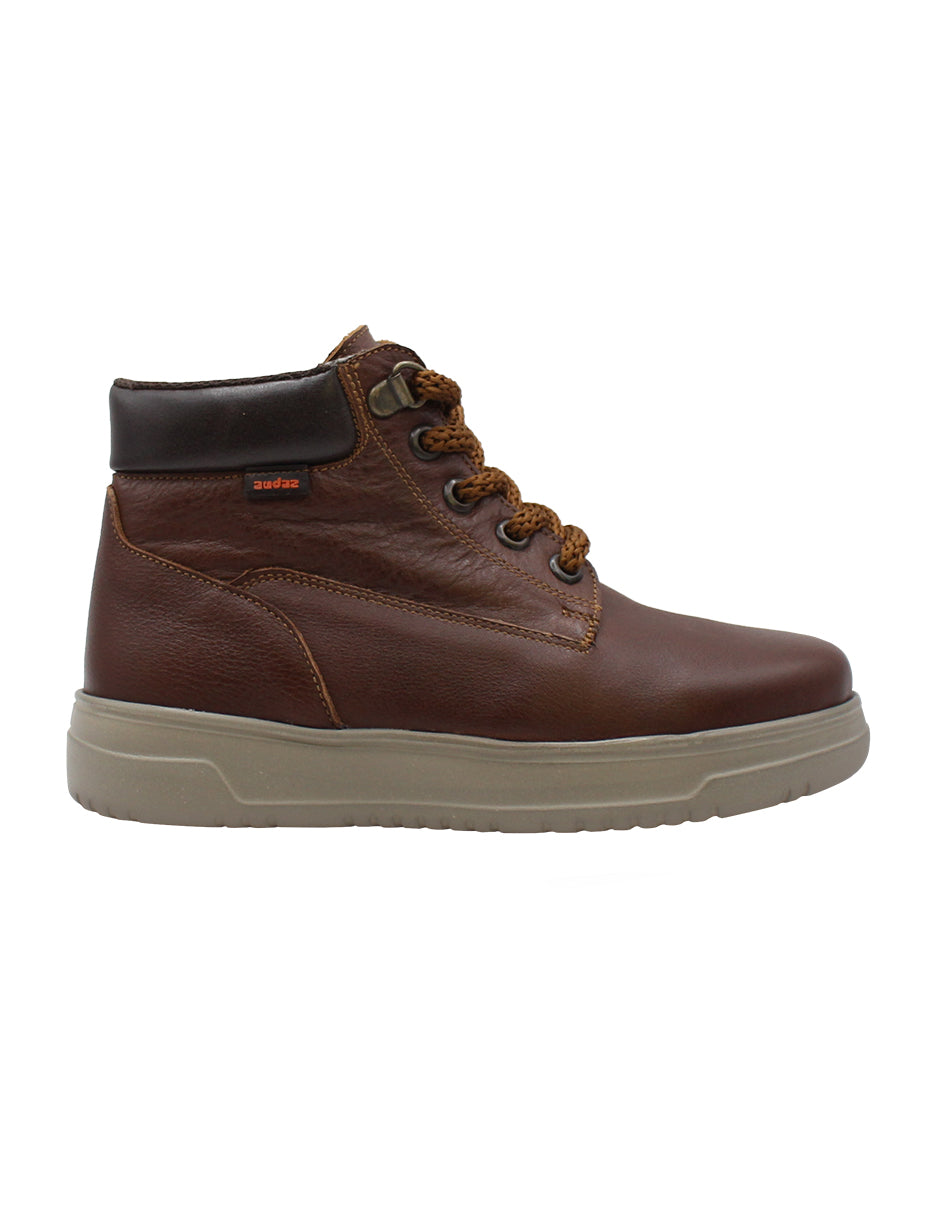 Botas para niño en tono café de la reconocida marca Audaz, fabricadas con piel genuina que ofrece resistencia y estilo. Cuentan con un diseño clásico de bota con punta redonda, tacón de 3 cm y plataforma, brindando comodidad y firmeza al caminar. Su cierre de agujeta garantiza un ajuste seguro, mientras que el interior sintético proporciona suavidad y confort durante todo el día. Una opción ideal para calzar a los niños con elegancia y funcionalidad.