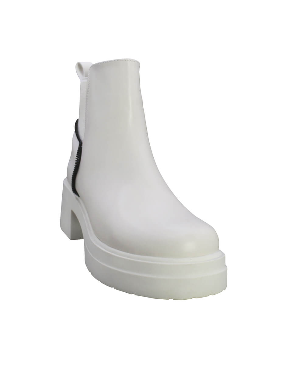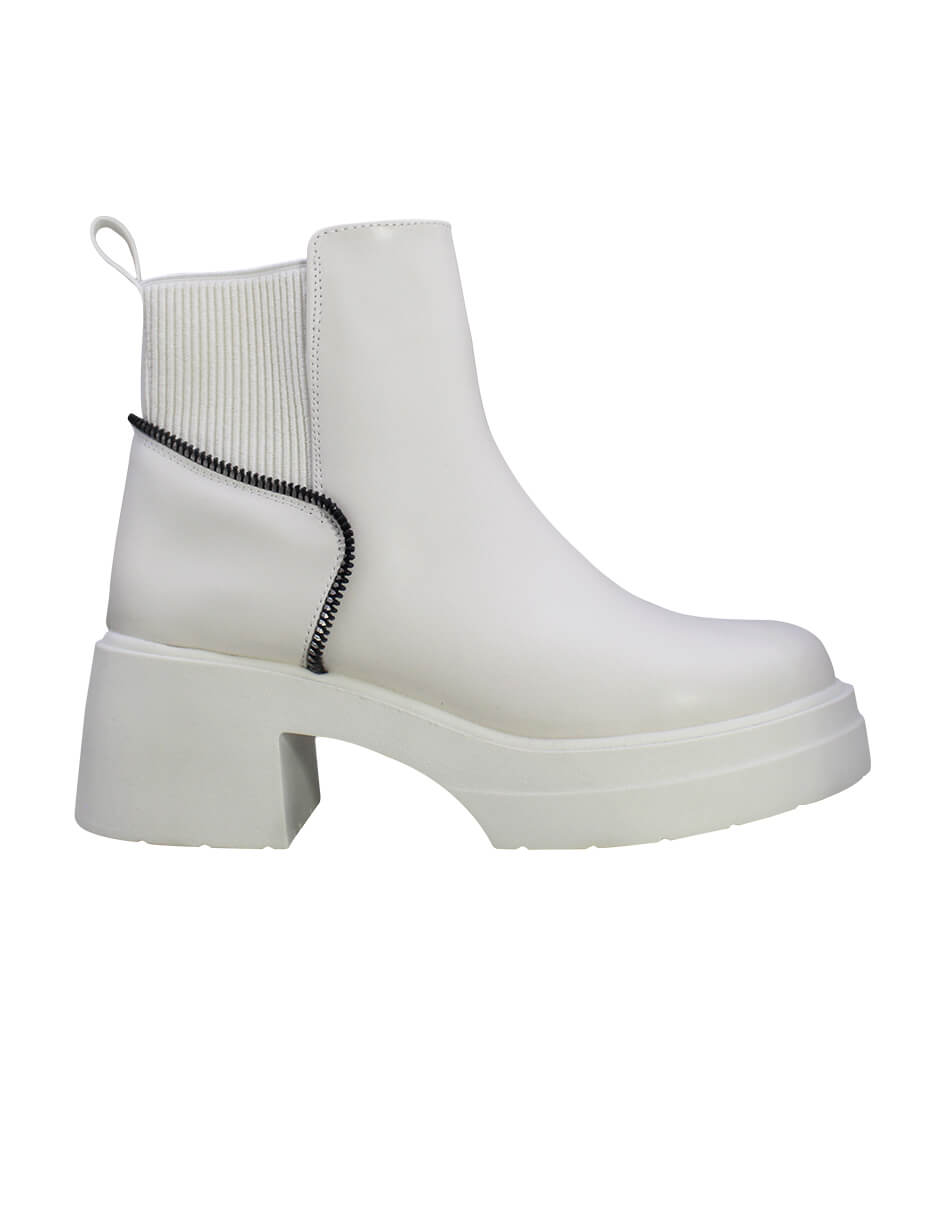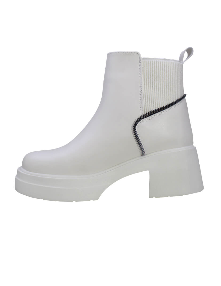 El botín casual para mujer, elaborado en piel de color beige, combina estilo y resistencia. Cuenta con una plataforma de 3 cm y un tacón de 6 cm que proporcionan un equilibrio ideal entre comodidad y altura. El tubo mide 14 cm con un diámetro de 15 cm, asegurando un ajuste cómodo. Con punta redonda añade un detalle sofisticado para complementar cualquier look diario con elegancia y personalidad.