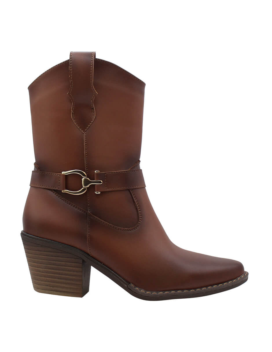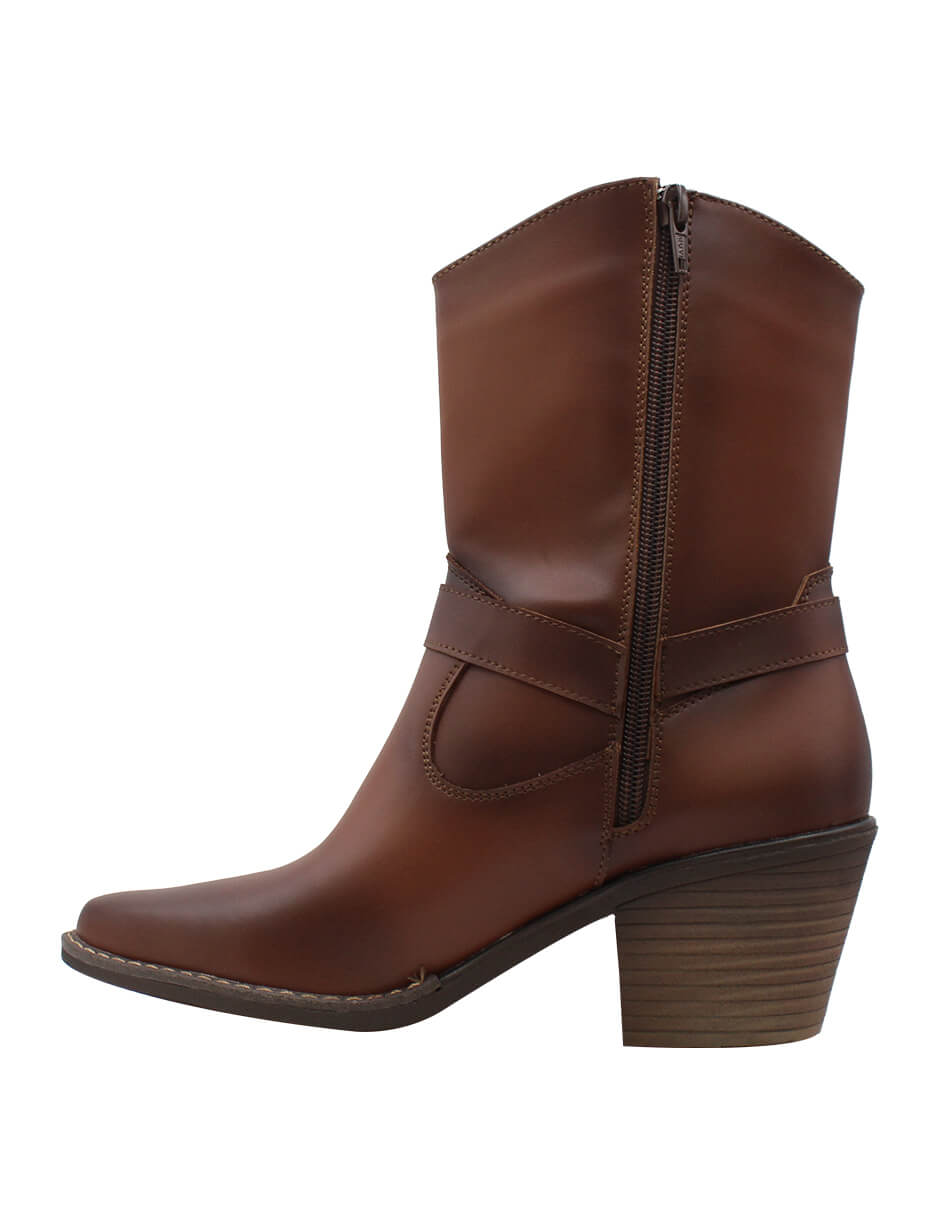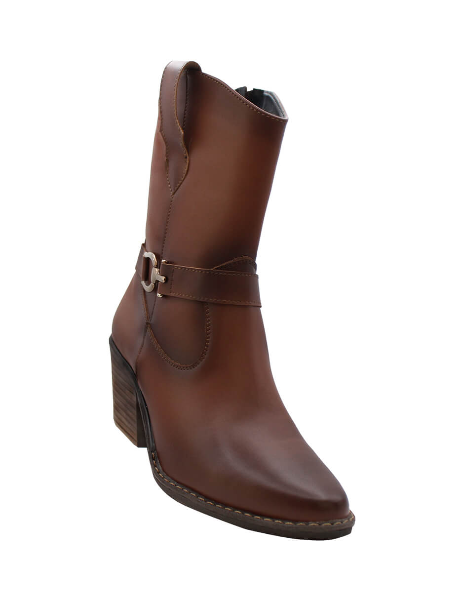 BOTIN VAQUERO SINTÉTICO PARA MUJER COLOR CAFÉ LEON 488 TAN