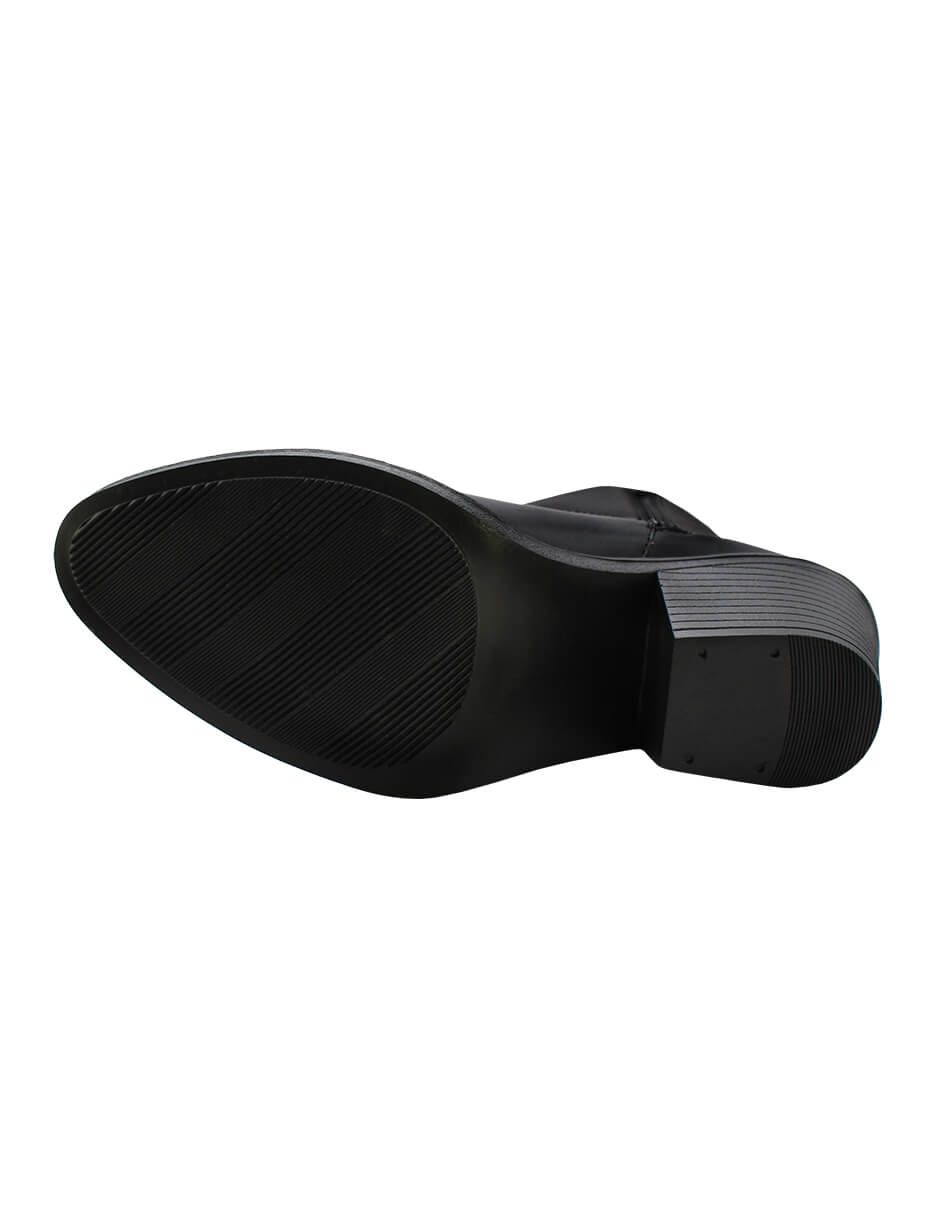 Botín estilo vaquero para mujer, elaborado en material sintético negro. Cuenta con una suela antiderrapante para mayor seguridad al caminar. El tacón mide 6 cm, el tubo tiene una altura de 21 cm y un diámetro de 12 cm, ofreciendo un ajuste cómodo y versátil para cualquier ocasión.
