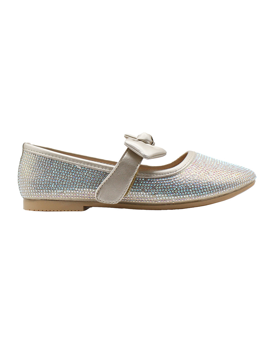 Estas flats para niña en color nacarado combinan estilo y comodidad, con un práctico cierre de velcro que asegura un ajuste perfecto y fácil de poner y quitar. Ideales para acompañar a las pequeñas en sus días llenos de aventuras, ofrecen un diseño delicado y versátil que complementa cualquier look infantil.