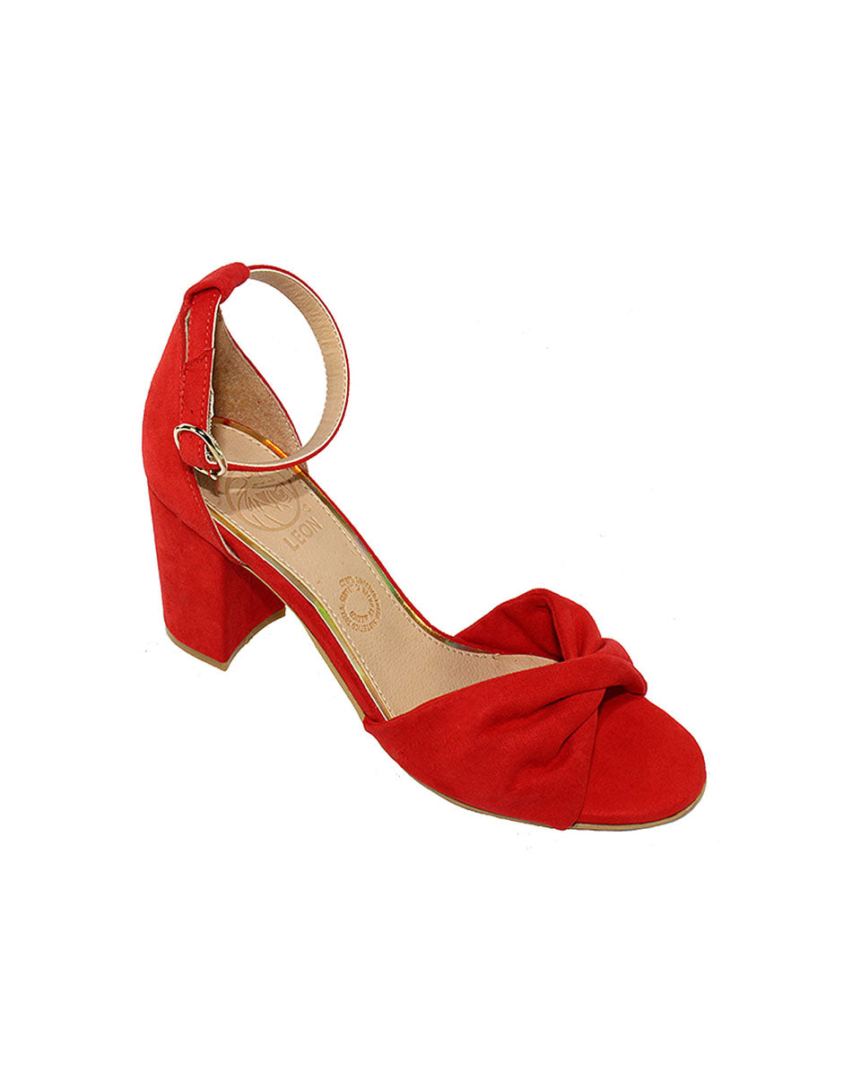 SANDALIAS DE VESTIR Y FIESTA MUJER GAMUZA ROJO LEON 051