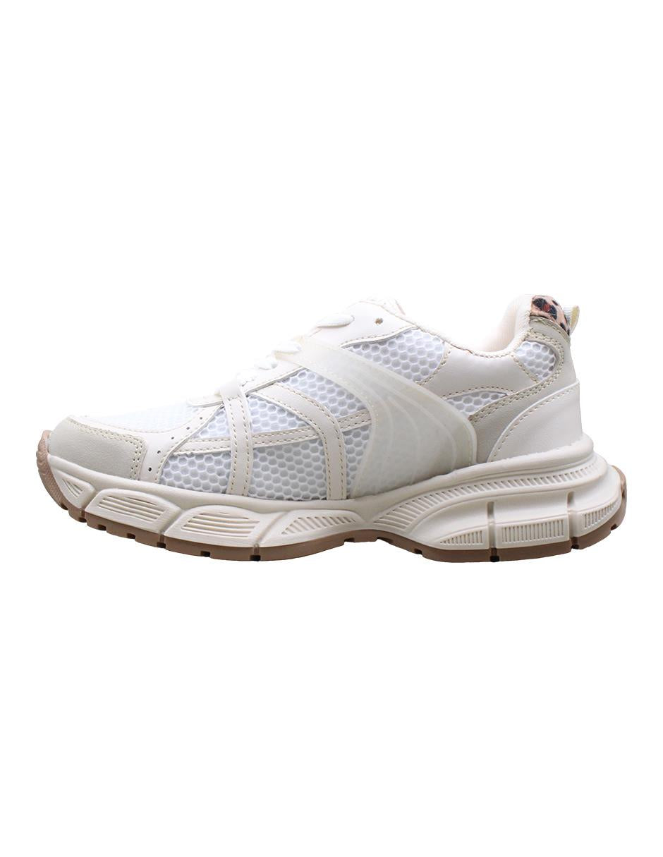 Tenis casual para dama color latte tigre con plataforma de 2.5 cm y suela de 4 cm. Su diseño con detalle animal print agrega un toque moderno y atrevido sin perder comodidad. Perfecto para resaltar tus looks urbanos con estilo.