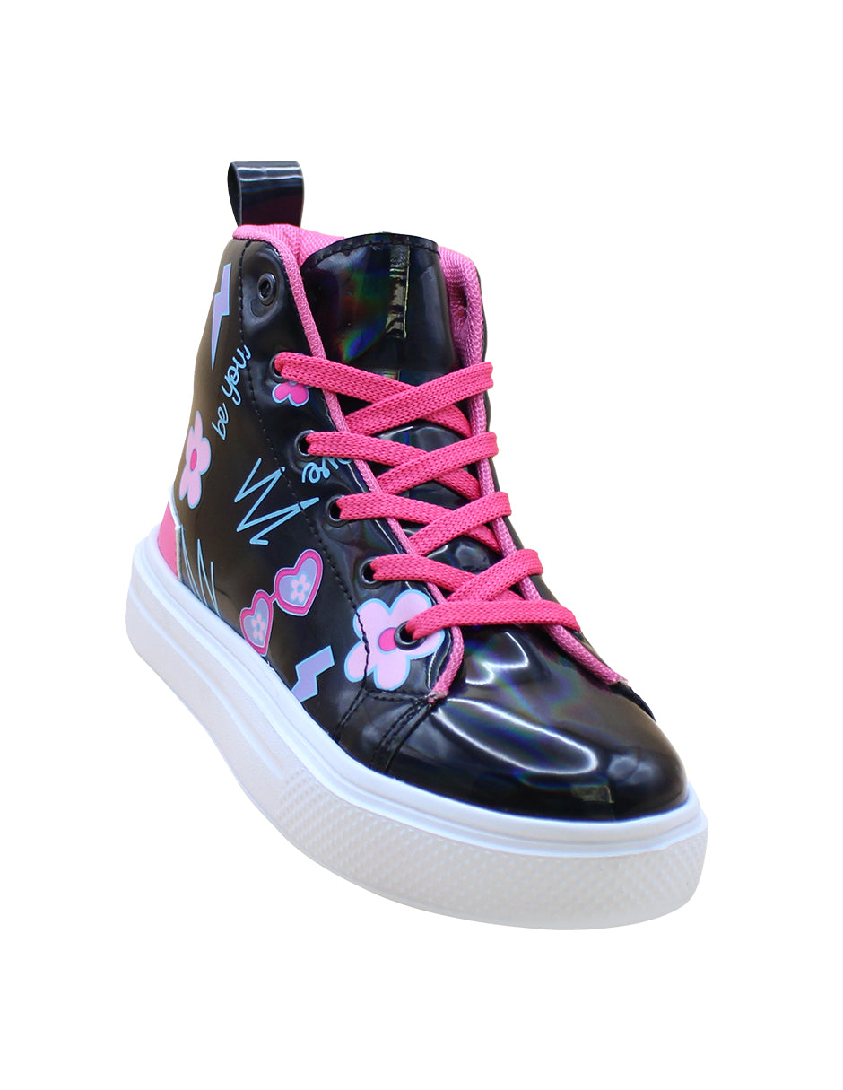Estos tenis modernos para niña en color negro son la combinación perfecta de comodidad y estilo a la moda. Ideales para que las pequeñas brille con cada paso, ofrecen un diseño divertido y vibrante que acompaña sus aventuras diarias con un toque alegre y único.