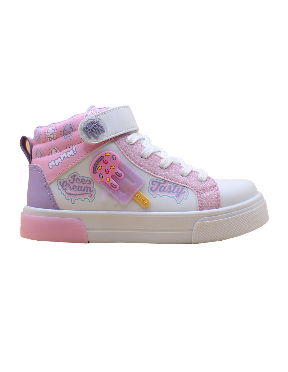 Estos tenis casuales para niñas en color rosa son pura alegría, con divertidos detalles de helados que los hacen tan frescos como un día de verano. Cómodos y llenos de estilo, son el calzado perfecto para que las pequeñas expresen su personalidad con cada paso que dan.