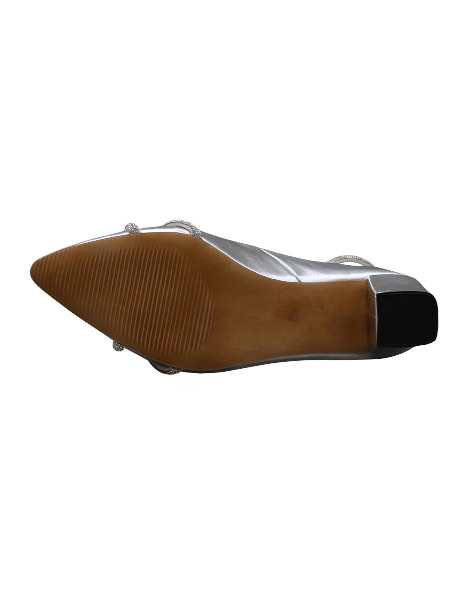 zapatilla casual para dama fabricada en material sintético con acabado metálico en color plata, ideal para brillar en cualquier ocasión especial. su tacón de 6cm proporciona una altura cómoda y estilizada, mientras la plataforma de 0.2cm suaviza el apoyo para una pisada más descansada. la pulsera de 8.4cm rodea el tobillo para dar mayor estabilidad, y los detalles con brillo en la punta aportan un toque sofisticado que combina perfecto con vestidos de noche o conjuntos formales.