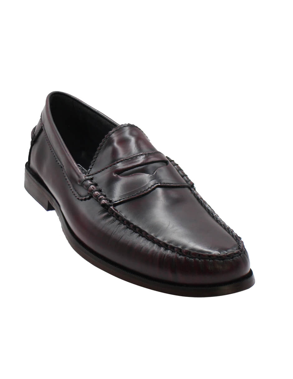 mocasín de vestir para hombre en color vino, fabricado en piel vacuno con diseño sobrio y sofisticado. tacón de 2.1 cm y plataforma de 0.6 cm que brindan estabilidad y confort. ideal para reuniones o eventos formales. calidad zapaterías león: camina con confianza. modelo 5003vino.