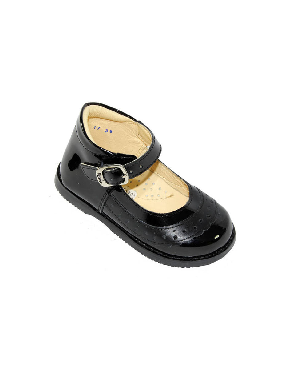 MODELO: 1944, GENERO: NIÑA, MARCA: "KINDER", MATERIAL EXTERNO: "CHAROL", ESTILO: "ZAPATOS", FIJACION: "BROCHE", MATERIAL INTERIOR: "TEXTIL", SILUETA DEL TRABAJO: "CERRADO", PUNTA: "REDONDA"